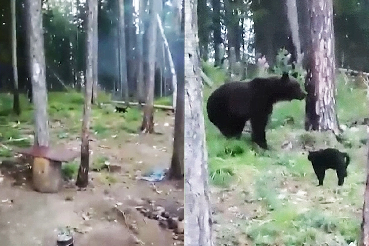 Домашний кот Васек отогнал от своих хозяев вышедшего из чащи медведя
