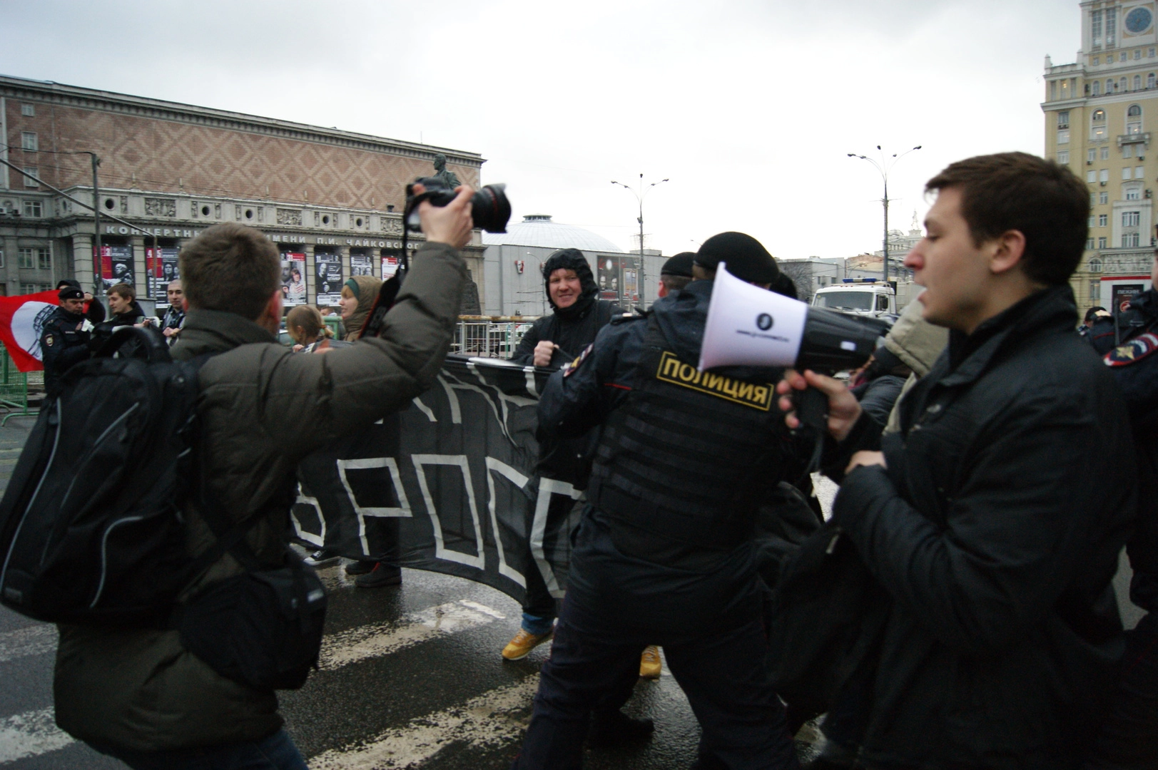 Надо сказать, что на акции 31 марта собралось весьма немного активистов, на площади в непогожий день было тихо и почти пусто. Но втечение получаса на Триумфальной появился лидер незарегистрированной партии "Другая Россия" Эдуард Лимонов, в окружении своих сторонников. Практически сразу он был задержан полицией. После этого сторонники писателя растянули транспарант и начали скандировать "Донбасс и Харьков в состав России!" , "Харьков и Донецк -русские города!". В итоге, около десяти человек были задержаны за участие в несанкционированной акции, на них составлены административные протоколы.