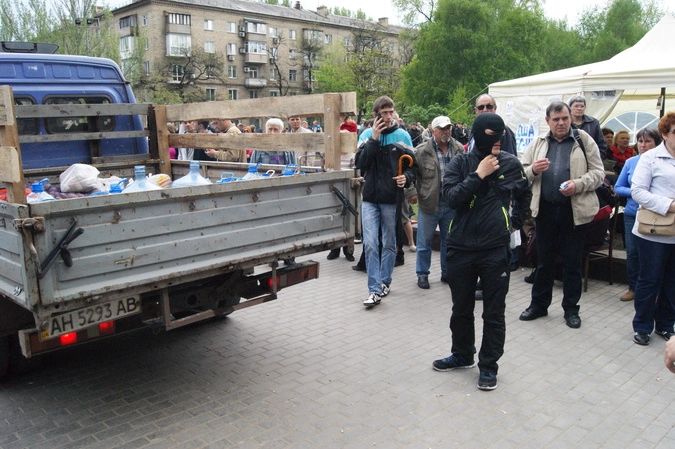 Слух об отравлении активистами "Правого сектора" воды в местном водозаборе уже опровергнут, однако ополченцы ДНР предельно бдительны: в город постепенно просачивается всё больше "правосеков" (так ополченцы называют активистов "Правого сектора"), поэтому совершенно естественно, если люди в масках попросят вас предъявить документы.