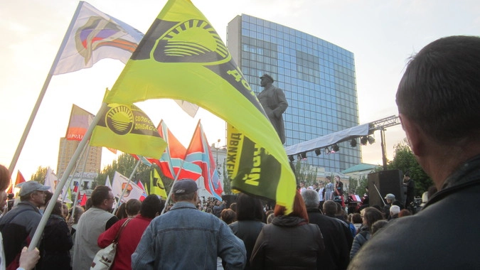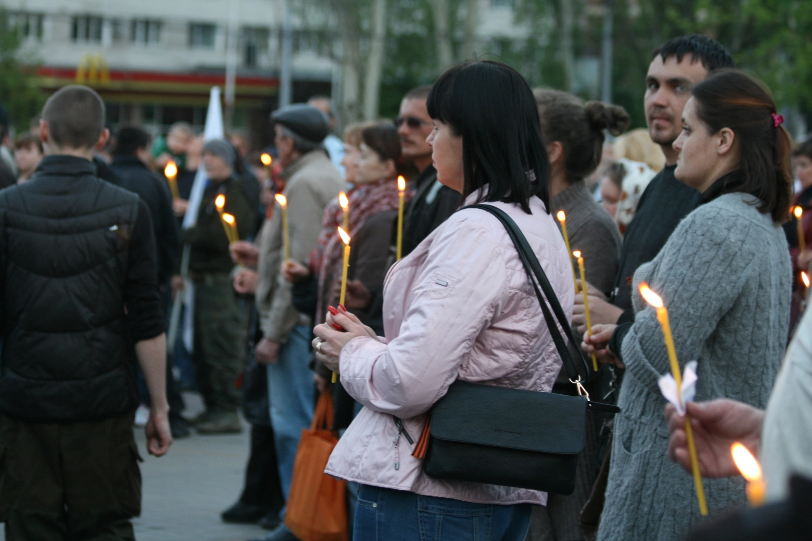 Вроде бы обычное для здешних мест уже дело, митинг. Были люди, выступающие со сцены, были слова о том, что Донецк скорбит вместе с Одессой и о том, что Одесса с Донецком. Были детишки, проникновенно читавшие стихи, в которых перекликаются две войны, та, Великая Отечественная, и эта нынешняя.