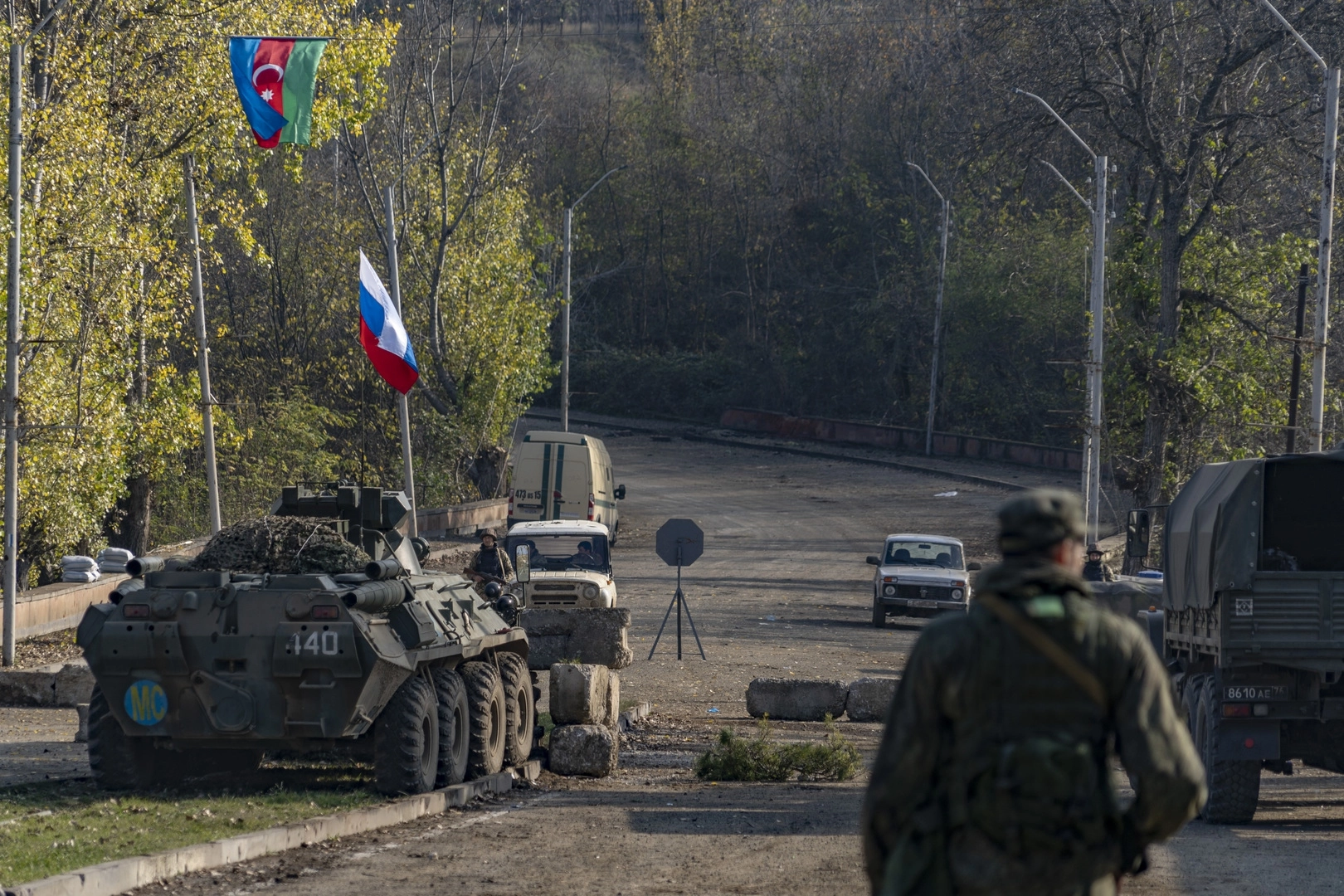 Нет теперь названия города на армянском, а за привычным поворотом в старинное поселение стоит блокпост с флагом Азербайджана. Не более чем в 100 метрах едут армяне мимо азербайджанских солдат, но безопасность и контроль здесь обеспечивают российские миротворцы.