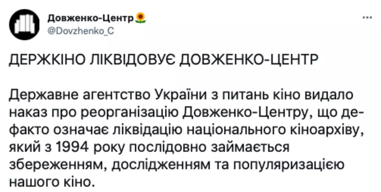 По мнению сотрудников «Довженко-центра», реорганизация национального киноархива фактически означает его ликвидацию.