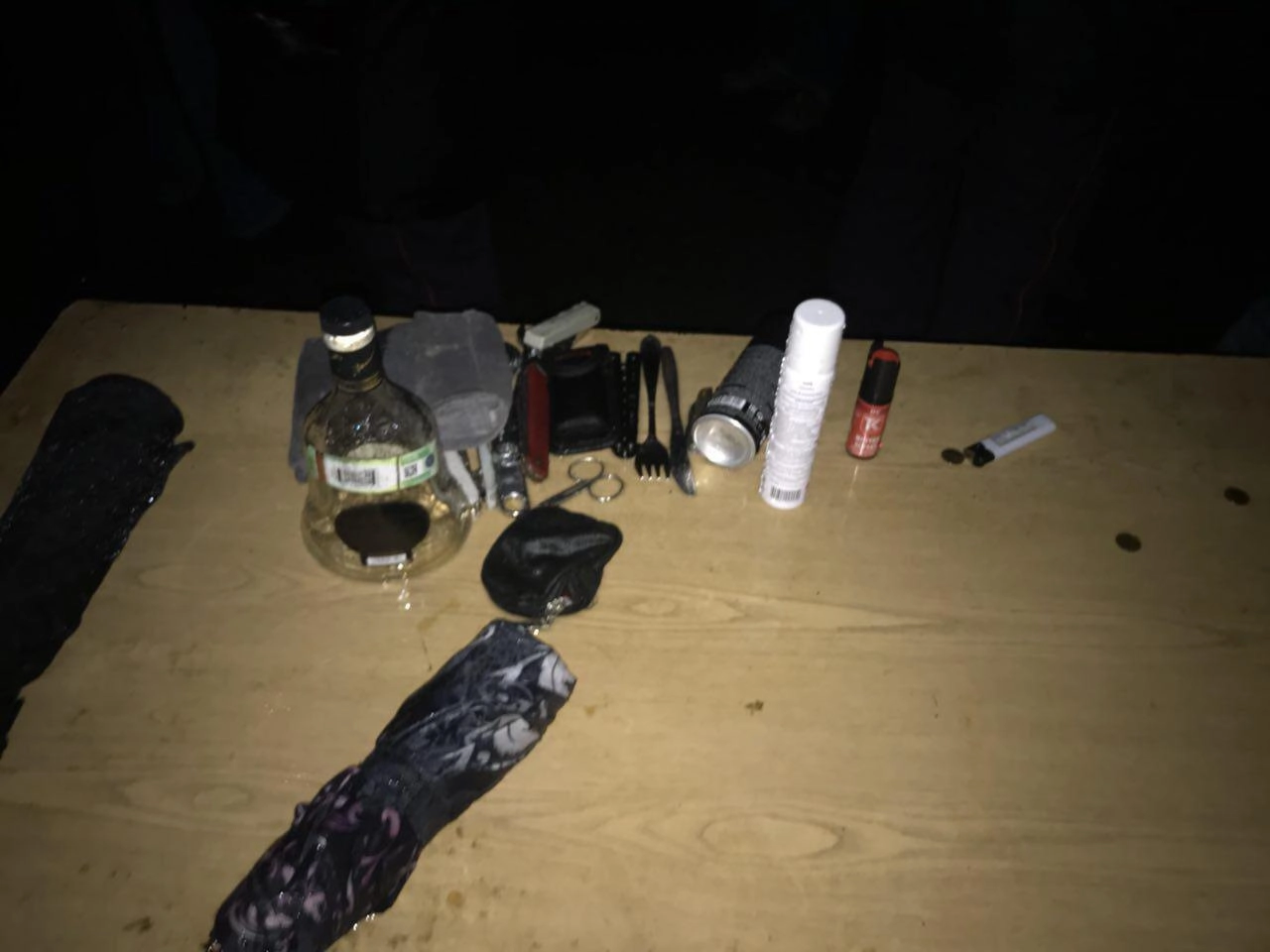 Полиция у пришедших на акцию столичного оппозиционера конфисковала ряд запрещенных на подобных мероприятиях предметов. Среди них были вилки, столовые ножи, бутылка из-под коньяка, перцовые баллончики, ножницы и так далее.