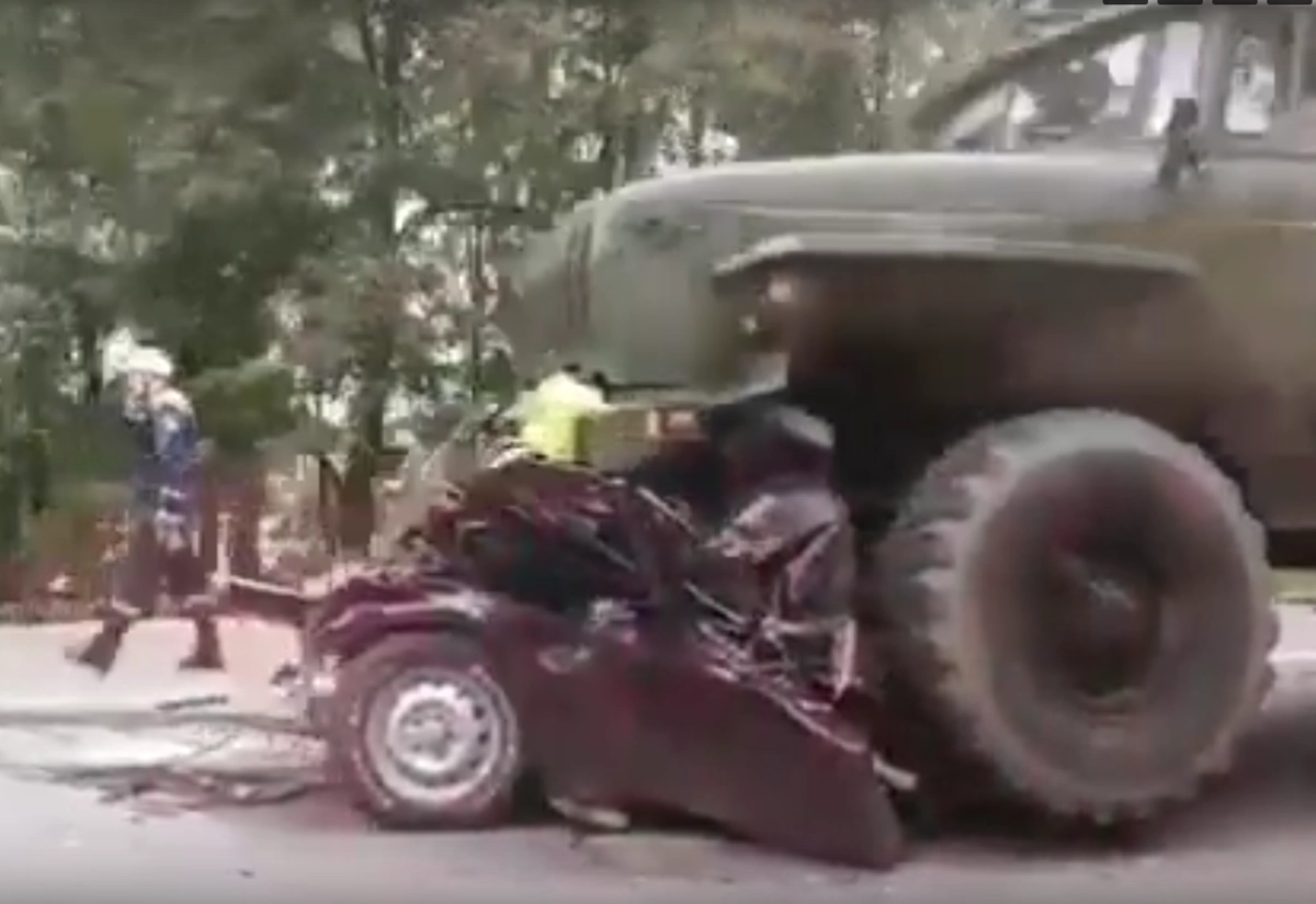 Два автомобилиста погибли, попытавшись втиснуться в колонну военной техники