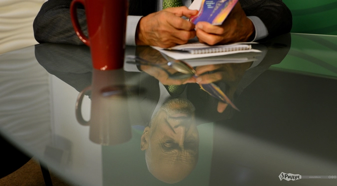 Первым делом Николай Николаевич извиняется и просит подождать – ему надо провести какие-то важные переговоры по телефону. Предлагает чай, кофе и одобренную экологами липецкую минералку. Сам он пьет цикорий с обезжиренным молоком. На нем идеально выглаженный пиджак с нежно-зеленым галстуком, на лацкане блестит синий значок «Добрый ангел мира».