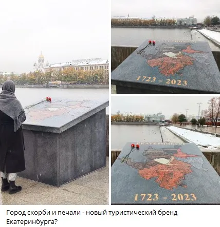 Монумент в виде большой плиты, украшенной декоративной картой городских районов и датами 1723–2023, вызвал у многих екатеринбуржцев и пользователей Рунета из других уголков России ассоциации с надгробным памятником и породил соответствующие мемы и демотиваторы.