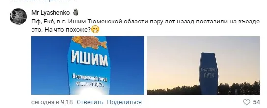 Многие комментаторы отметили, что подобные «надгробные» памятники к юбилеям ставят и в других российских городах. Например, стела в ярко выраженной форме гроба обнаружилась в Ишиме.