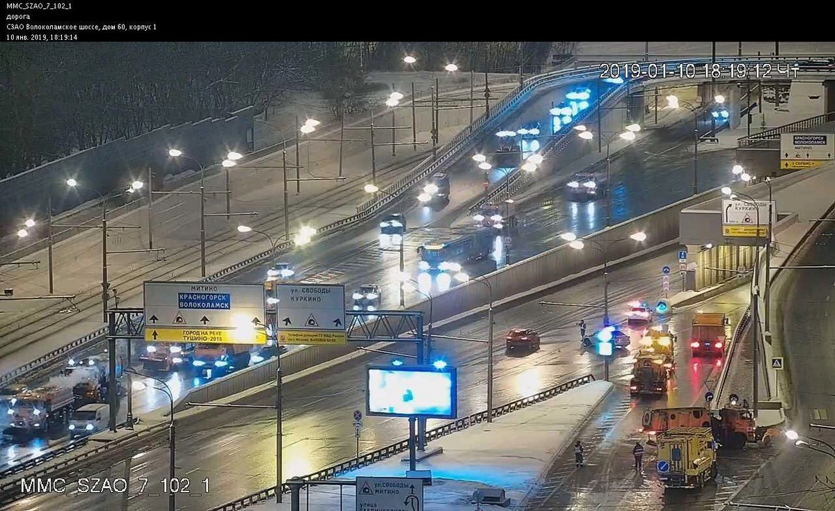 Утром 10 января движение по Волоколамскому шоссе в сторону области было полностью перекрыто из-за обвалившегося в Тушинском тоннеле грунта.