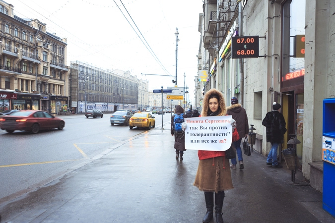 «Пусть патриотический деятель культуры, совмещающий протесты против толерантности с призывами быть толерантными к мату в кино, уточнит, где заканчивается его толерантность к скверне? Все, например, отправляют естественные потребности, их тоже нужно демонстрировать на широком экране?» — продолжают пикетчики.