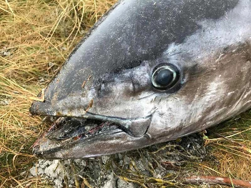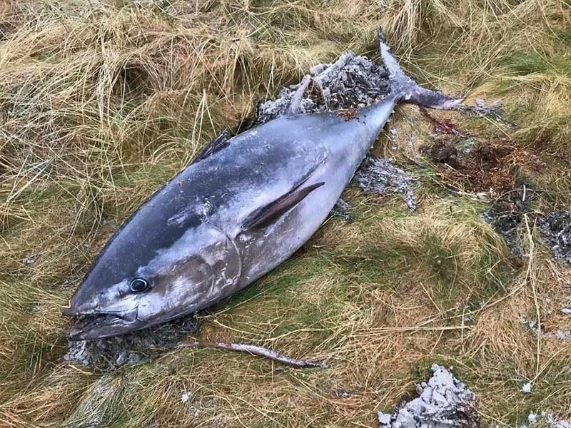 Гигантского тунца нашла на пляже жительница шотландского острова Сандей. Предположительно рыбу выбросил на берег ураган Дейрде, при котором порывы ветра достигали 120 километров в час. Голубой атлантический тунец оказался длиной 6,5 футов.