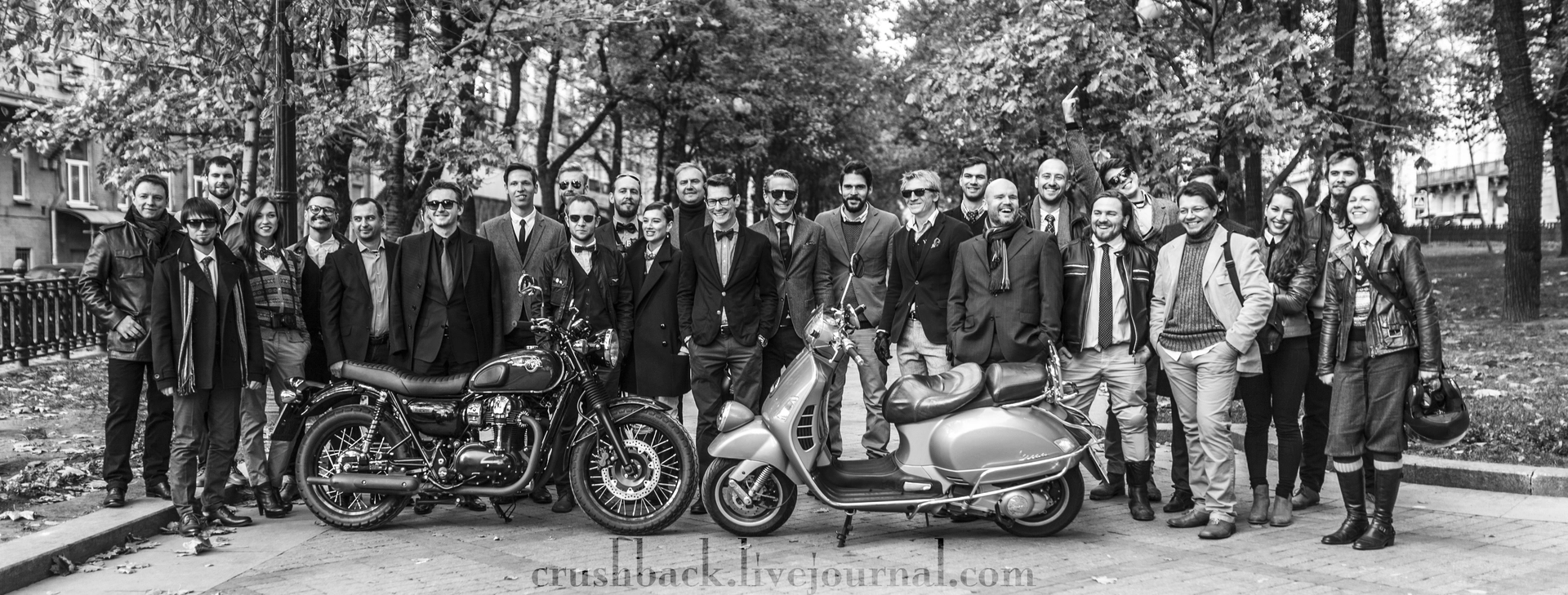 Вельвет, пальто, классическая обувь, даже галстуки с бабочками — во внешнем виде, конечно, было намеренное преувеличение дендизма. Конечно, не все участники парада ездят так по Москве ежедневно. Но в том и смысл парада: показать себя и свои мотоциклы в эталонном состоянии.