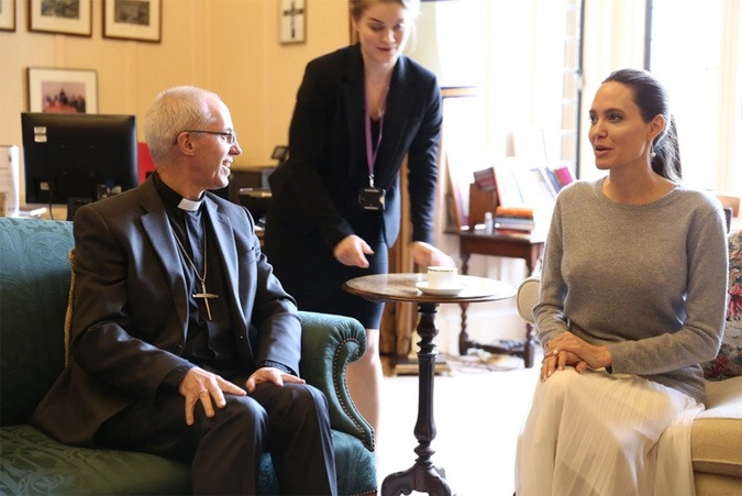 Американская актриса Анджелина Джоли продолжает свою миссию в качестве посла доброй воли УВКБ ООН. Она встретилась с архиепископом Кентерберийским Джастином Уэлби в Лондоне.