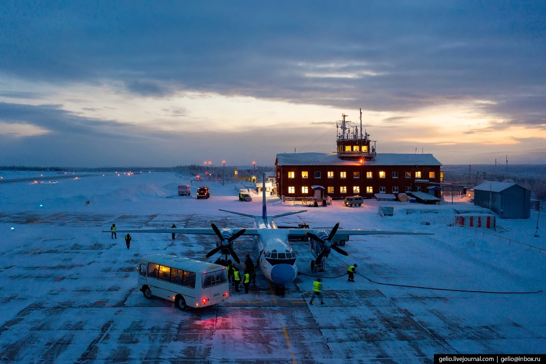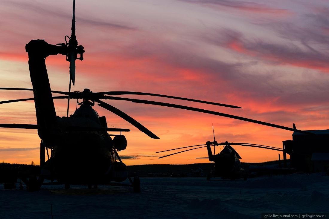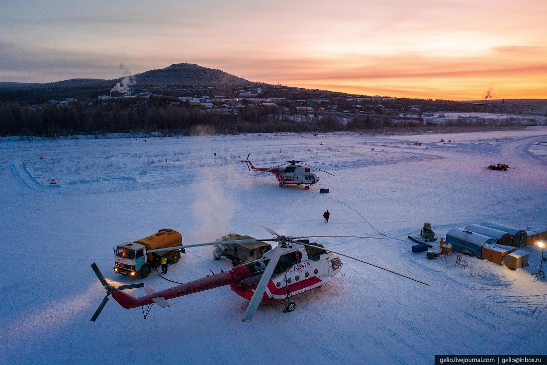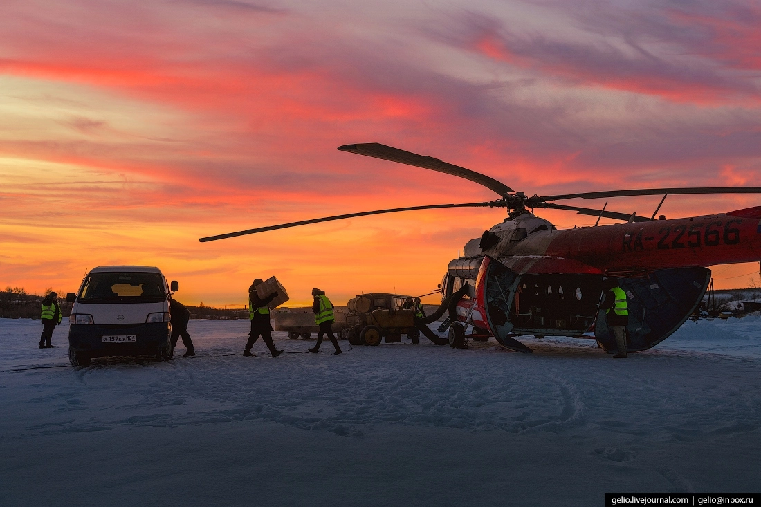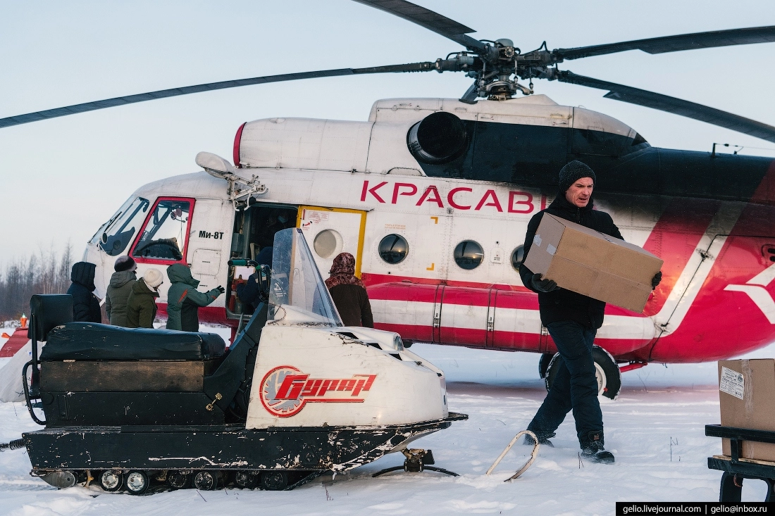 Погрузка багажа и грузов. Вертолёты не летают в тёмное время суток, поскольку посадочные площадки освещаются далеко не во всех посёлках. Если требуется срочный вылет, связанный, например, с приездом бригады врачей для экстренной медицинской помощи, в тех посёлках, где освещения нет, площадку для посадки подсвечивают фарами «Буранов» местных жителей.