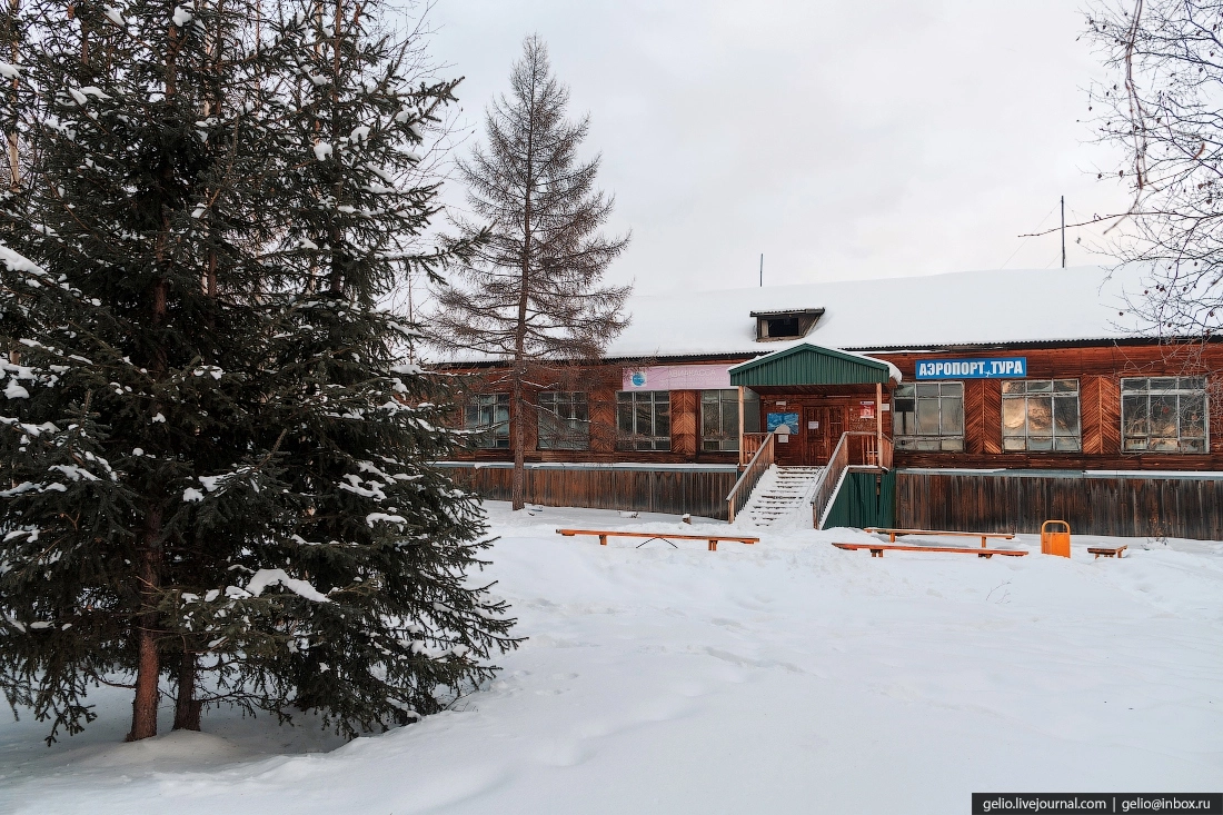 Посадка в аэропорту «Горный», расположенный в 10 км от Туры.