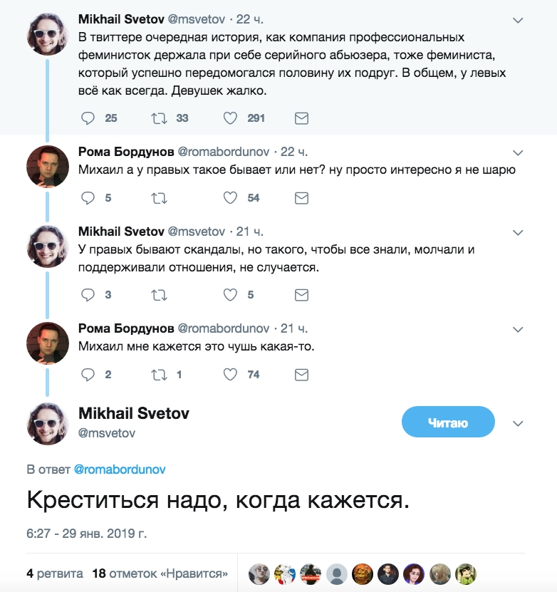Мимо искрящегося треда не смог пройти член федерального комитета Либертарианской партии, блогер Михаил Светов.