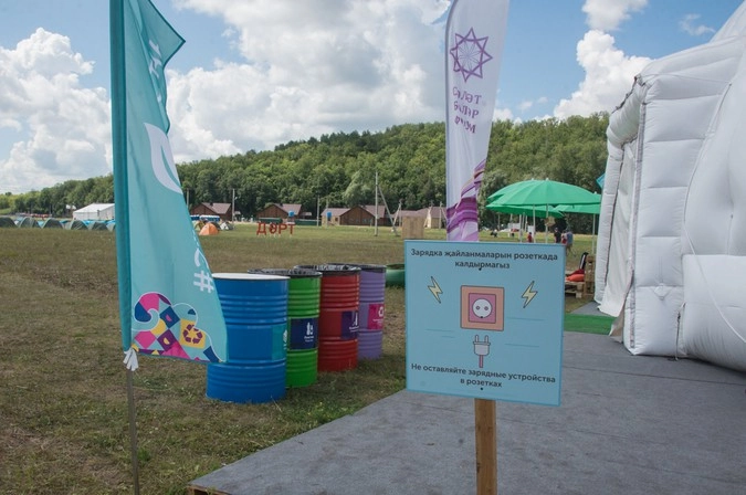 К экологичности приучают всех участников форума — на всей территории действует раздельный сбор отходов. В стилизованных бочках-контейнерах собирают раздельно пластик, картон и бумагу, стекло и металл, а арт-объекты в виде гигантских банок собирают в себя пластиковую тару.