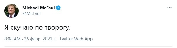 26 февраля в своем микроблоге в соцсети Twitter дипломат и специалист по РФ на русском языке признался, что без российского творога ему уже не очень комфортно.