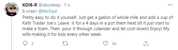 Подписчиков Макфола — как американских, так и российских — впечатлило его признание в любви к творогу, и они принялись обдумывать, каким молочным продуктом в такой ситуации можно заменить полюбившуюся еду. Многие предлагали рецепты, как приготовить творожок в американских условиях самому.