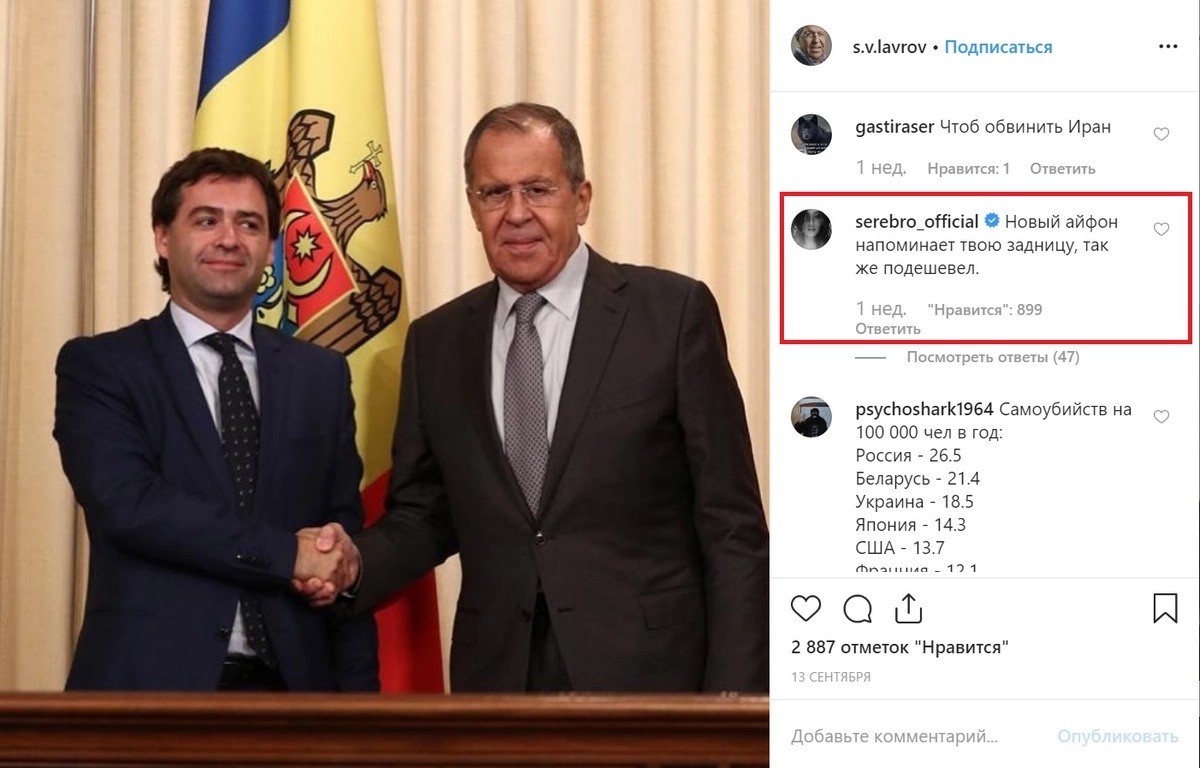 Экс-солистка Serebro оставила оскорбительное сообщение в Instagram Лаврова