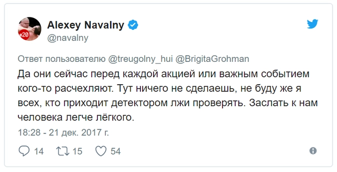 Ответ Навального последовал незамедлительно: блогер ожидаемо обвинил экс-сотрудника в работе на Кремль.
