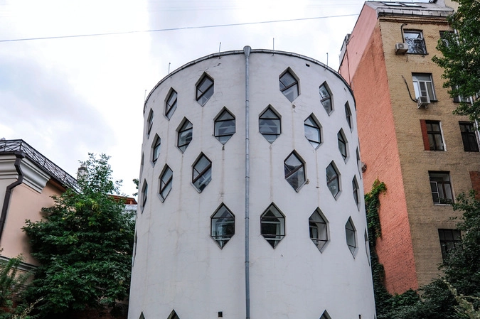 Адрес дом-мастерской Константина Мельникова - Кривоарбатский переулок, 10. Дом выстроен по собственному проекту архитектора в 1927-29 гг.