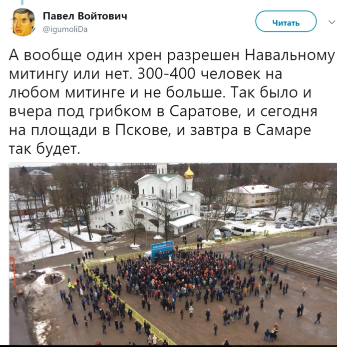 Юрист напомнил, что и ранее, перед пятничным саратовским митингом соратники блогера пытались убедить людей, что акция законна, мотивируя тем, что встречу с Навальным запланировали провести в местном гайд-парке.