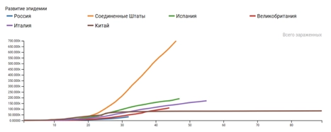Согласно официальной статистике, по уровню распространения коронавируса Россия даже не входит в первую десятку стран.