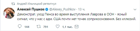Ранее демонстративный жест Пенса прокомментировал и председатель комиссии Совета Федерации по информационной политике Алексей Пушков.