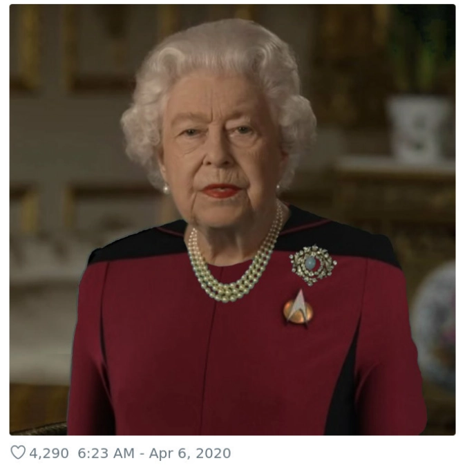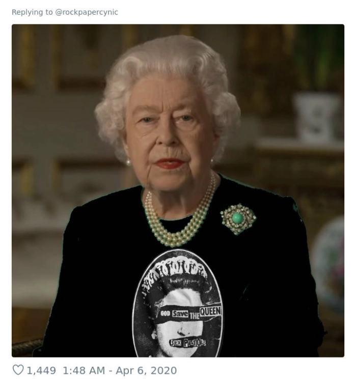 В связи с происходящим в мире королева Великобритании впервые за 18 лет выступила 5 апреля на телевидении с посланием к своим подданным. Елизавета II выразила благодарность британцам, соблюдающим карантин, а также поблагодарила медиков, которым приходится особенно тяжело в нынешнее время.