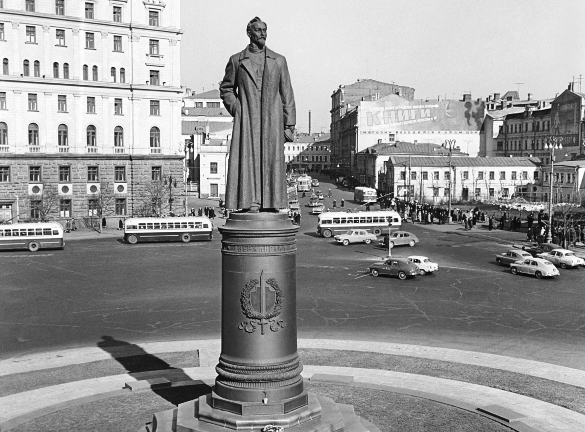 Памятник основателю советских органов госбезопасности Феликсу Дзержинскому был установлен на Лубянской площади в 1958 году. Он был выполнен по проекту скульптора Евгения Вучетича, который известен как автор памятника советскому воину в Трептов-парке в Берлине, комплекса «Родина-мать» на Мамаевом кургане и скульптуры «Перекуем мечи на орала» в штаб-квартире ООН в Нью-Йорке.