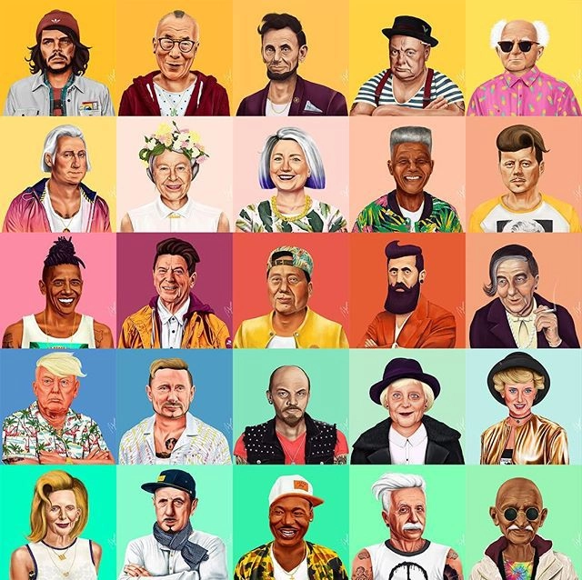 На этот раз из известных исторических личностей сделали хипстеров. Иллюстратор Амит Шимони (Amit Shimoni) создал художественный проект Hipstory, в рамках которого нарисовал красочные портреты знаменитых политиков и общественных деятелей разных лет в хипстерской одежде с соответствующими причёсками.