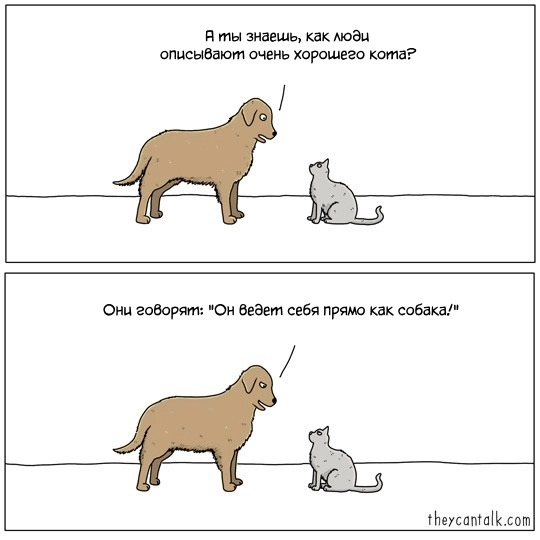 Художник Джимми Крэйг (Jimmy Craig) рисует забавные комиксы, в которых рассказывает, о чём думают братья наши меньшие. Свой проект о мыслях животных автор так и назвал — «They Can Talk», что переводится как «Они умеют говорить». Благодаря его иллюстрациям можно очутиться в мире, где люди и звери разговаривают на одном языке и понимают друг друга.