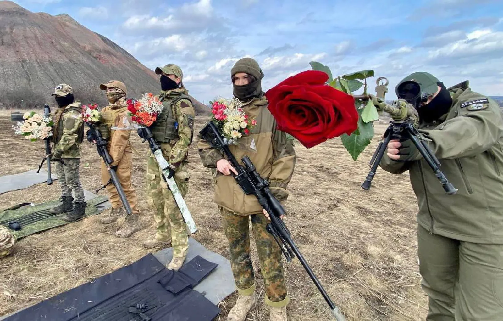 Бойцы добровольческого подразделения «Эспаньола», собранного из футбольных фанатов, поздравили женщин с 8 Марта.