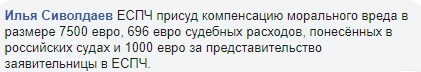 Суд считает, что государство не выполнило свои обязательства по статье 3 Конвенции. Таким образом, имело место нарушения этого положения, — написал юрист на своей странице в Facebook.
