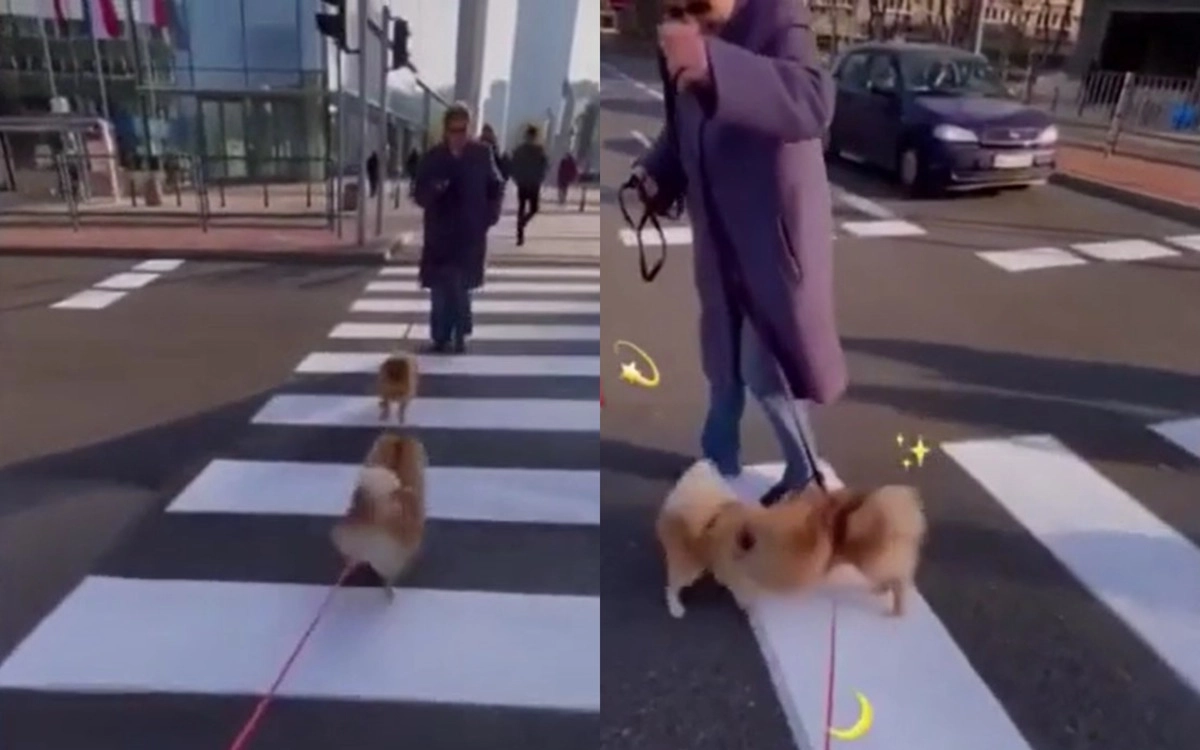 На видео попали впервые встретившиеся собаки, которые закружились в эффектном танце. Песикам это знакомство очень понравилось, а вот их хозяевам нет: ведь им пришлось долго разматывать скрученные поводки. Кроме того, встреча пушистых произошла на пешеходном переходе, что чуть не создало дополнительные проблемы их владельцам. Зато питомцы мило пообщались, а это самое главное.