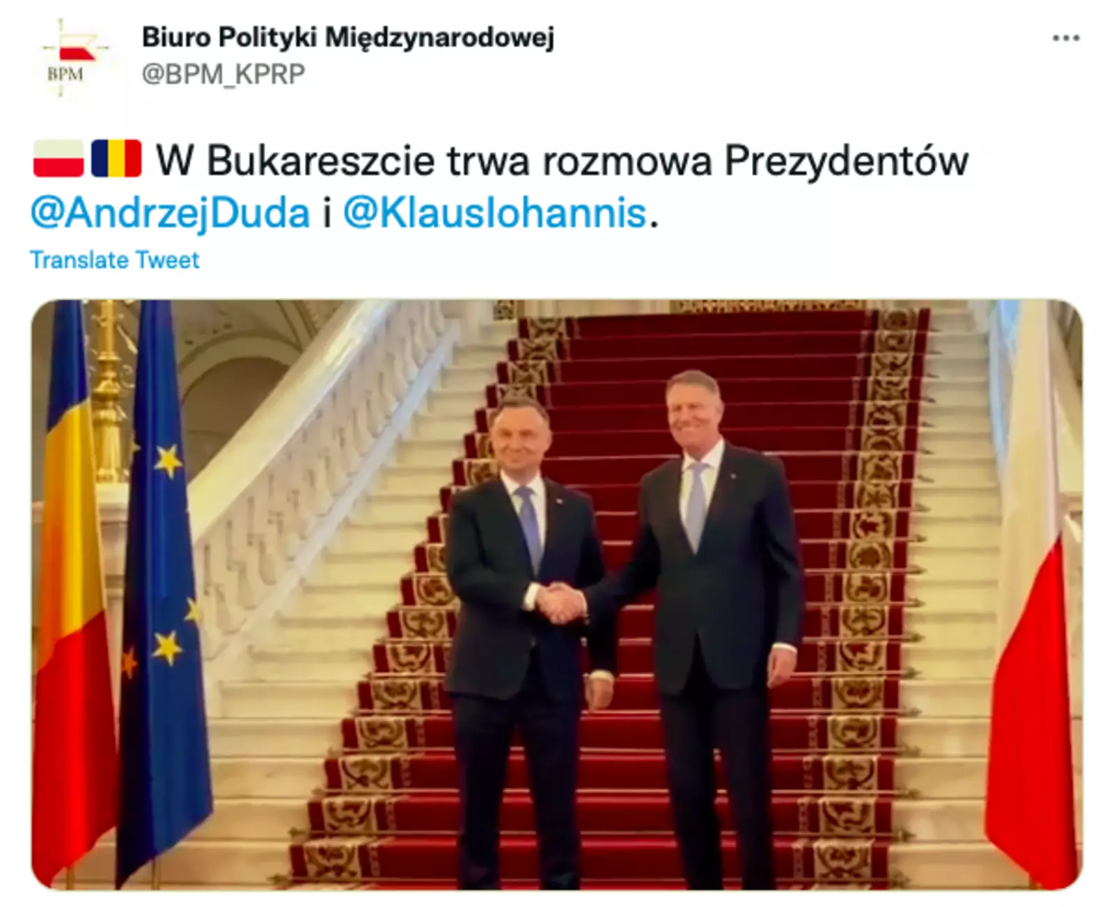 Президент Дуда встретился с президентом Румынии Клаусом Йоханнисом в Бухаресте во вторник днем. Этот визит ознаменовал третью и последнюю остановку в серии визитов Анджея Дуды, сопровождавшихся политическими консультациями с региональными лидерами перед саммитом НАТО в четверг.