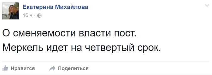 Вместе с тем, в Рунете набирают популярность скептические комментарии о «вечном канцлере» Меркель: поток ироничных комментариев в соцсетях главным образом касался темы принципа сменяемости власти», который в отличие от западных стран якобы отсутствует в России: