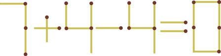 Перед вами равенство 7+4−4=0, которое не выполняется. Переложите всего одну спичку, чтобы оно стало верным.