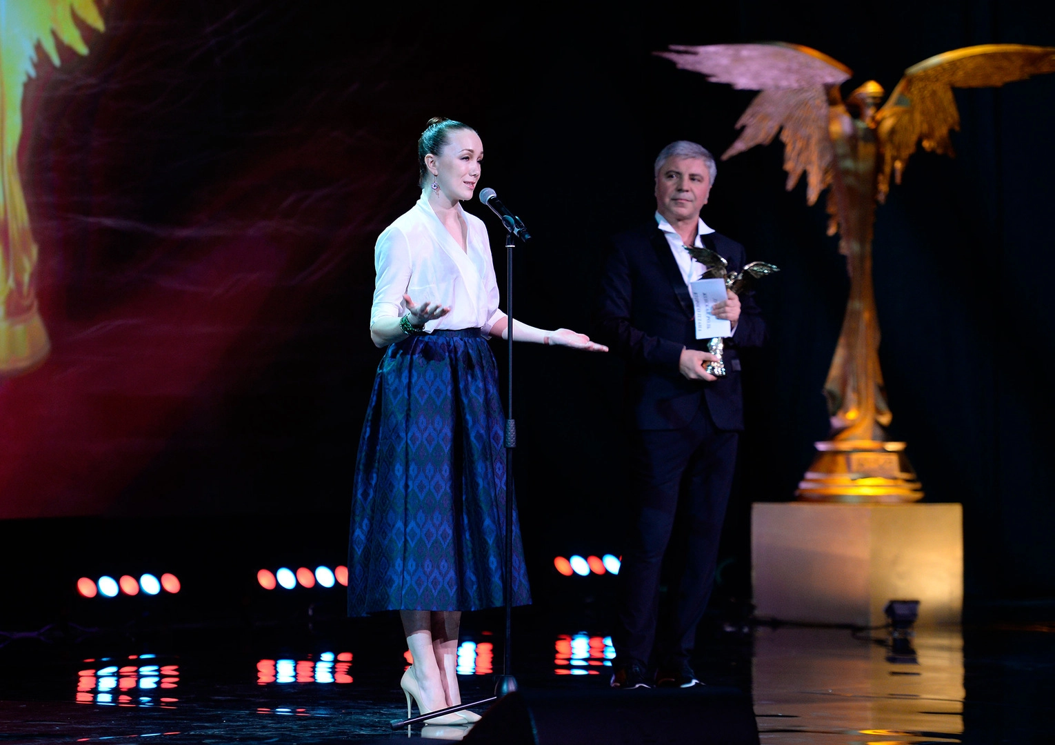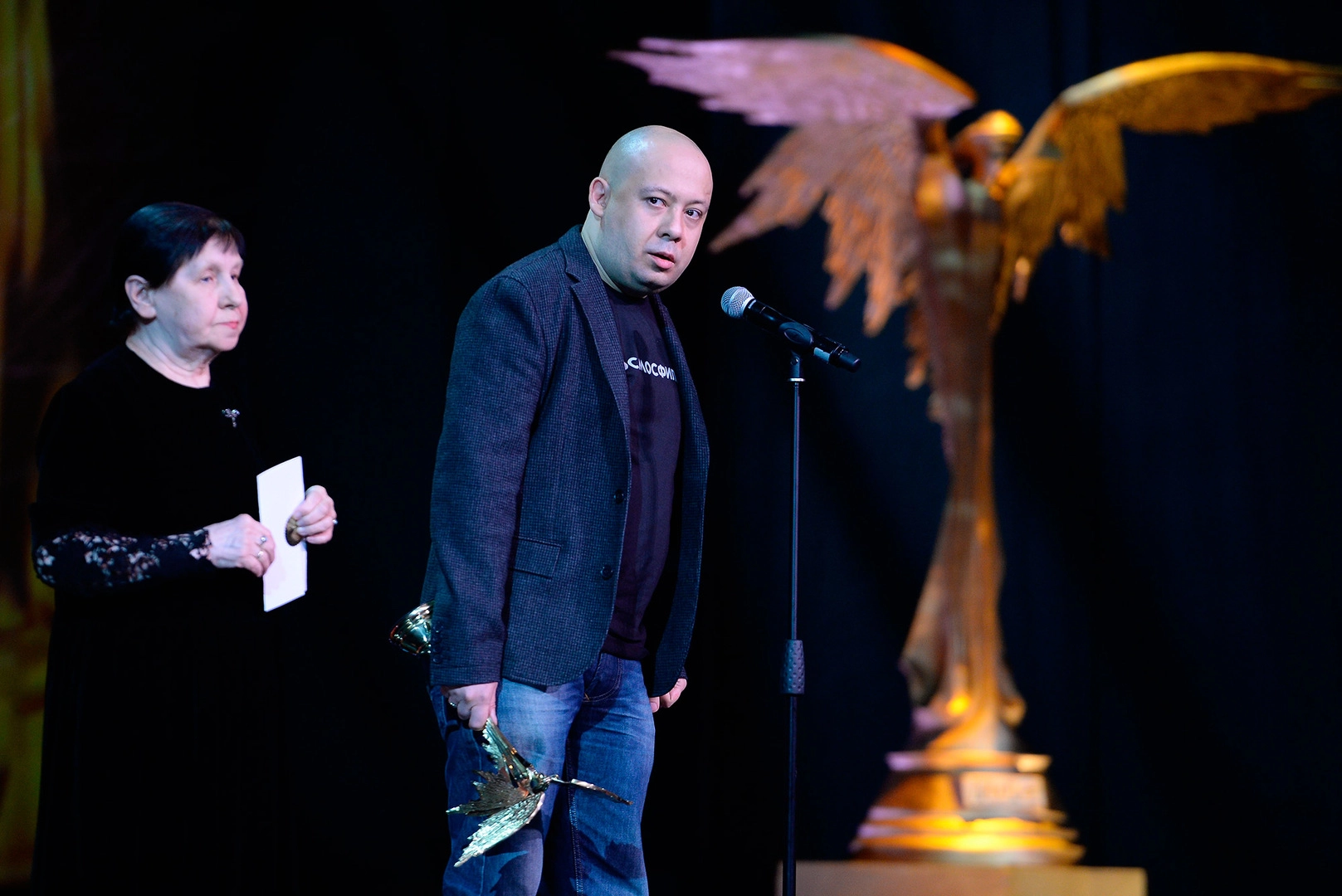 Режиссер Андрей Осипов получает приз в номинации "Лучший неигровой фильм" за фильм "Коктебельские камешки"
