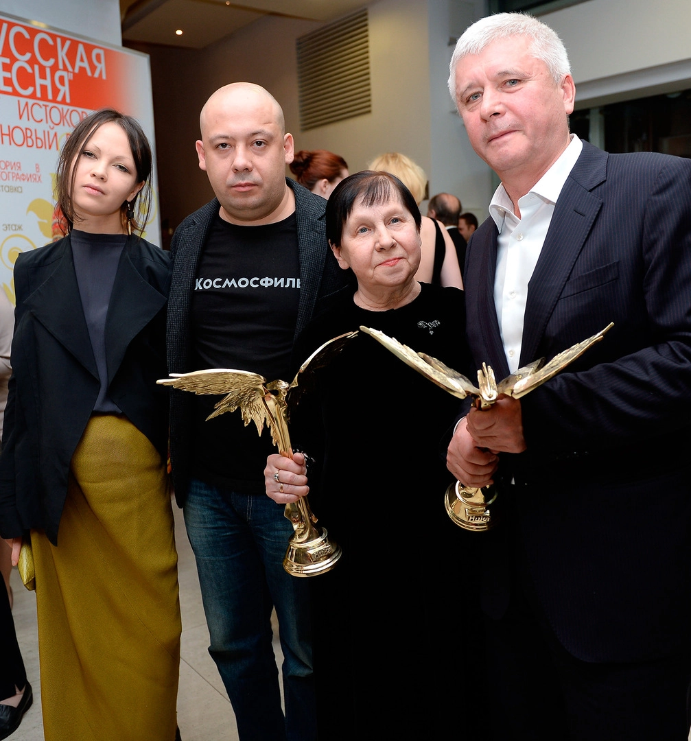 Режиссер Алексей Герман-младший с супругой Еленой Окопной, сценарист, соратник и жена Алексея Германа-старшего Светлана Кармалита и продюсер Рушан Насибулин с главными призами за фильм Алексея Германа-старшего "Трудно быть Богом"