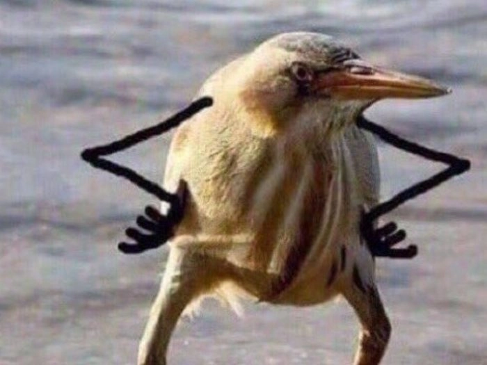 Фраза «Так, блэт» — это объединение двух мемов. Сама картинка берёт начало из знаменитой фотошоп-битвы 2009 года, когда пользователи пририсовывали руки разным птицам. А слово появилось после распространения мема «Блэд Нэвэльный» и тенденции коверкать слова.