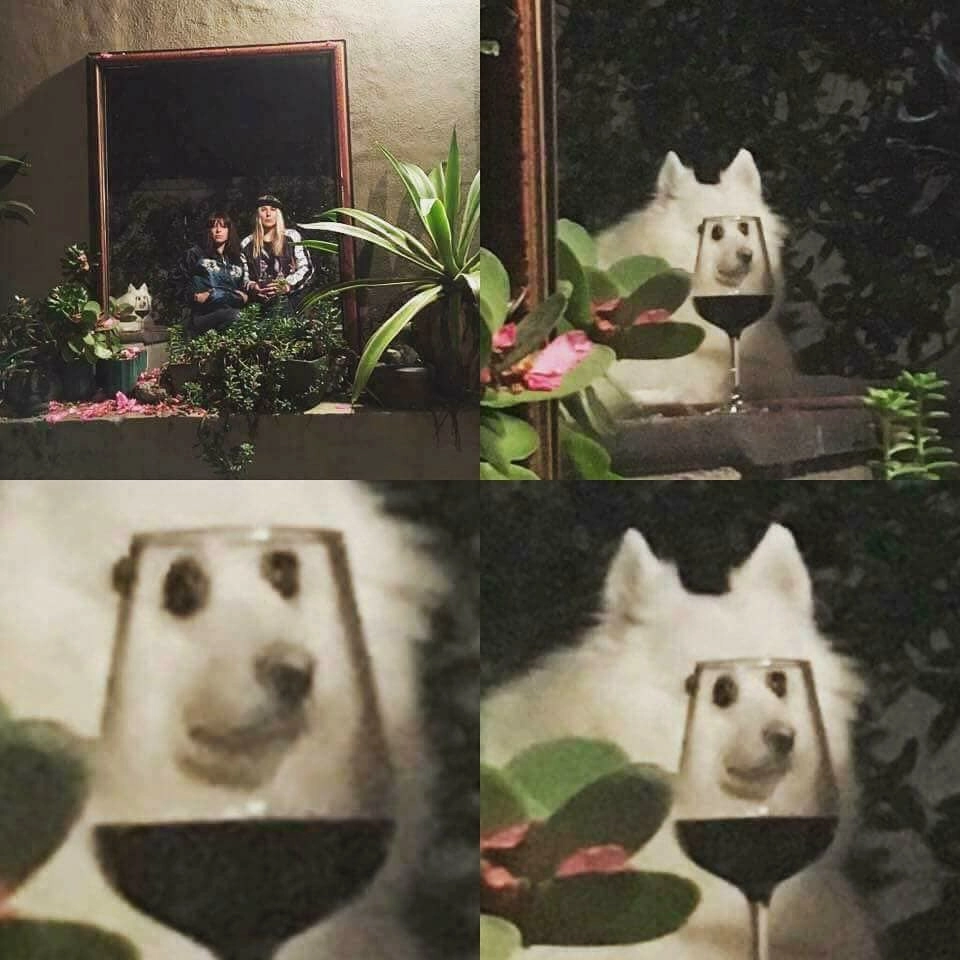 Дороу — это мем с белой собакой с бокалом, случайно попавшей в кадр. Собака смотрит сквозь бокал вина, из-за чего её морда забавно искажается. Чтобы показать, насколько ситуация смешная, автор укрупнил изображение животного в несколько раз.