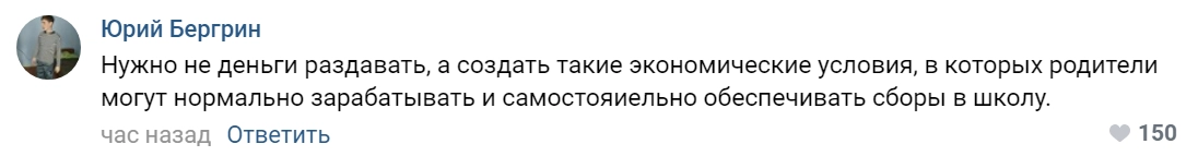 Заместитель главы комитета Госдумы по образованию и науке Борис Чернышов предложил ввести для семей школьников «первосентябрьский капитал», чтобы родителям было легче готовиться к учебному году. Идея вызвала активное обсуждение в Сети.