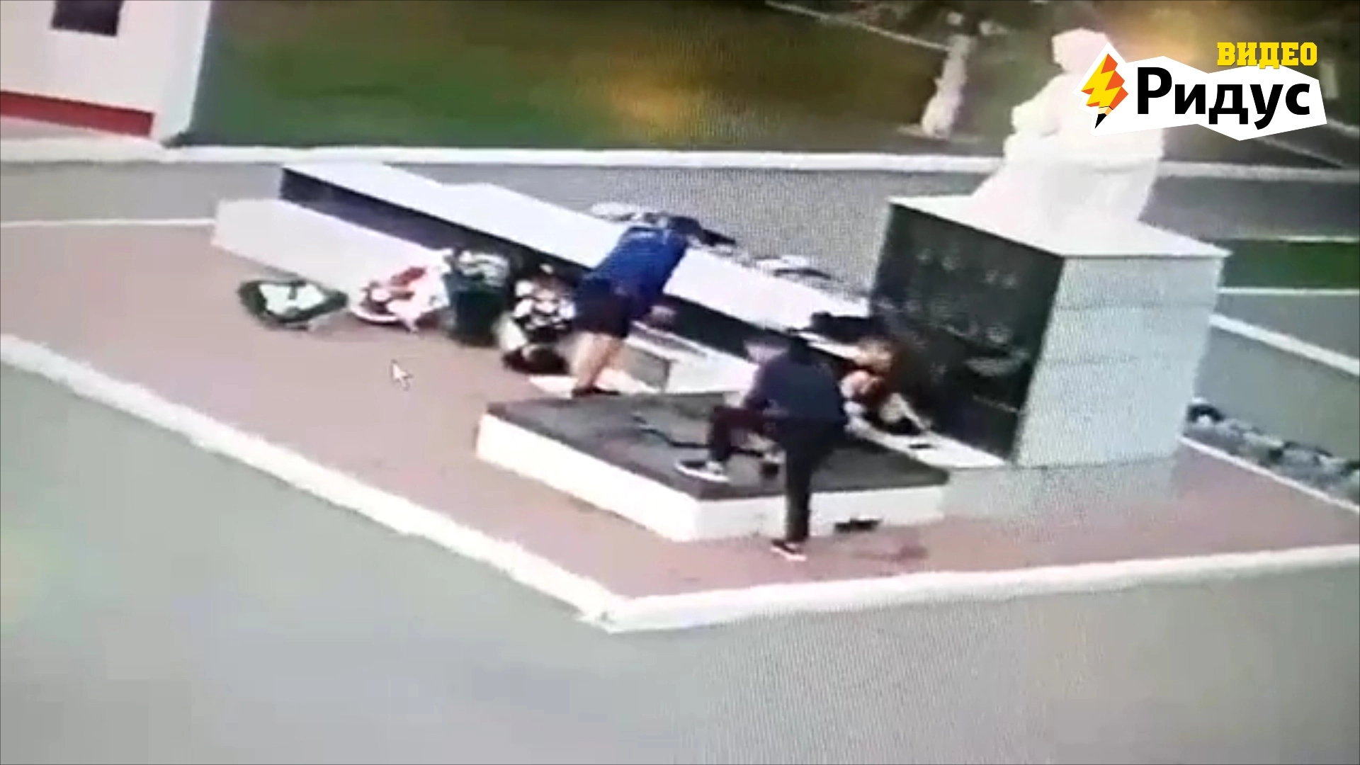 Выходка молодых людей попала в объектив видеокамеры, закрепленной на здании находящегося по соседству городского Центра внешкольной работы. На записи подростки слегка пошатываются, как пьяные. Один из них жмется к Вечному огню, будто пытаясь погреться, другой мочится с постамента на площадку, а третий наблюдает за их действиями.