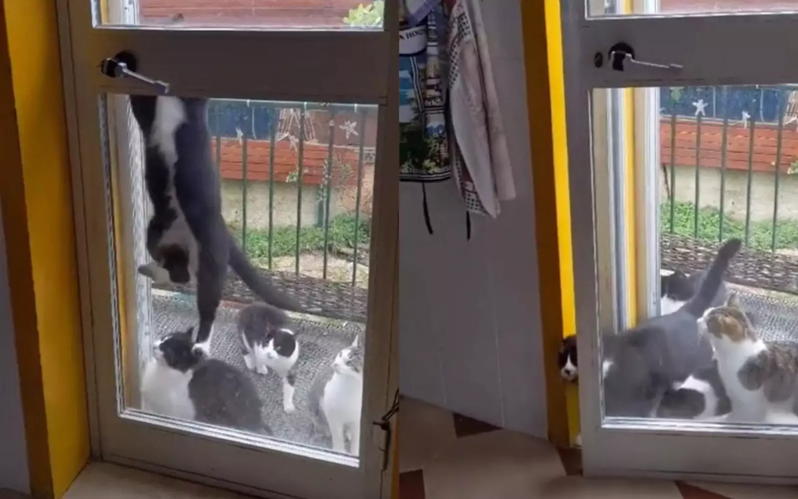 Этому хитрому коту больше не нужна помощь человека, чтобы зайти в дом