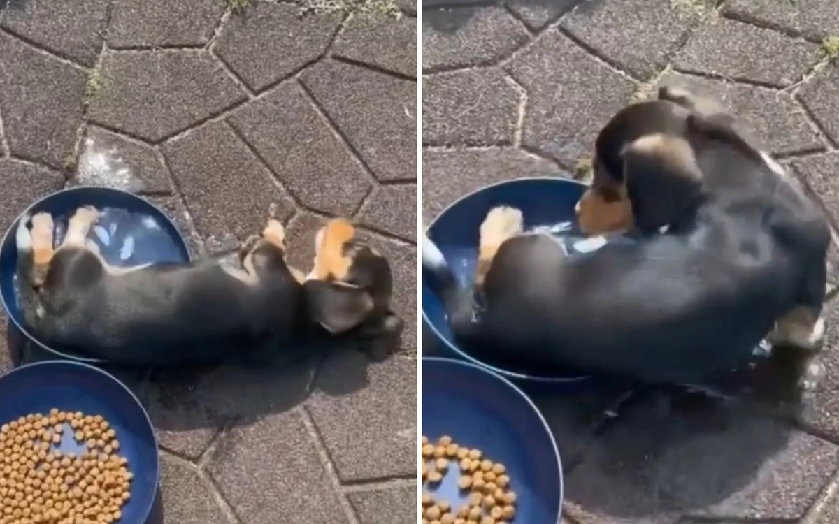 «Этот бассейн маловат»: щенок нашел место для купания, но разочаровался