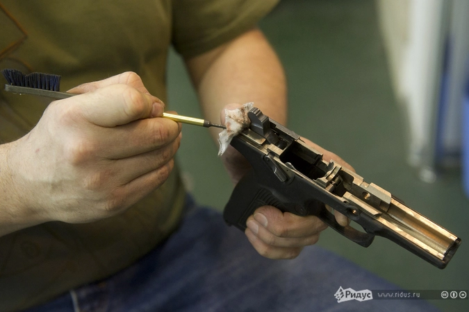 Рядом сидит Александр, он улыбается и чистит свой МР-446 «Викинг», созданный на базе пистолета Ярыгина. Сейчас этот «ствол» закреплен за ним в клубе, поскольку он регулярно приходит тренироваться. На вид Александру «за сорок», выглядит бодро и весело – он только что отстрелял 300 патронов.