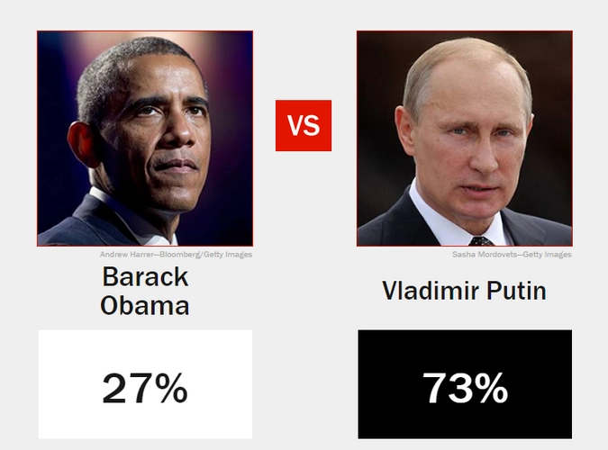 Стоит отметить, в марте 2014 года опрос, проведенный британским изданием The Independent, показал, что 90% читателей считают российского лидера лучшим политиком мира. Затем в конце октября текущего года Forbes второй раз подряд признал Владимира Путина самым влиятельным человеком в мире, впервые за долгое время отправив президента США на вторую строчку.