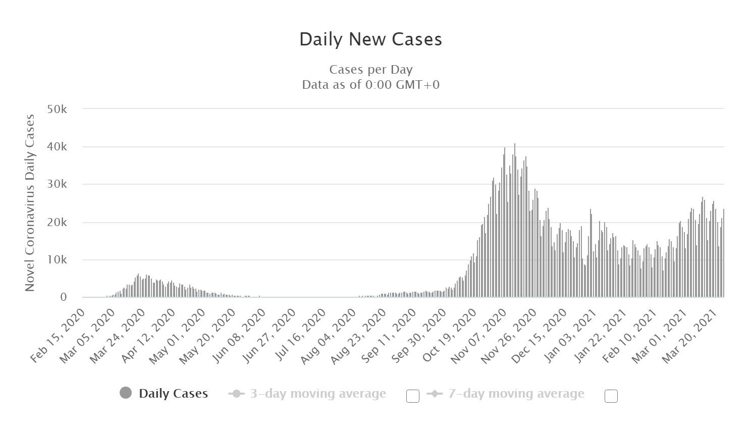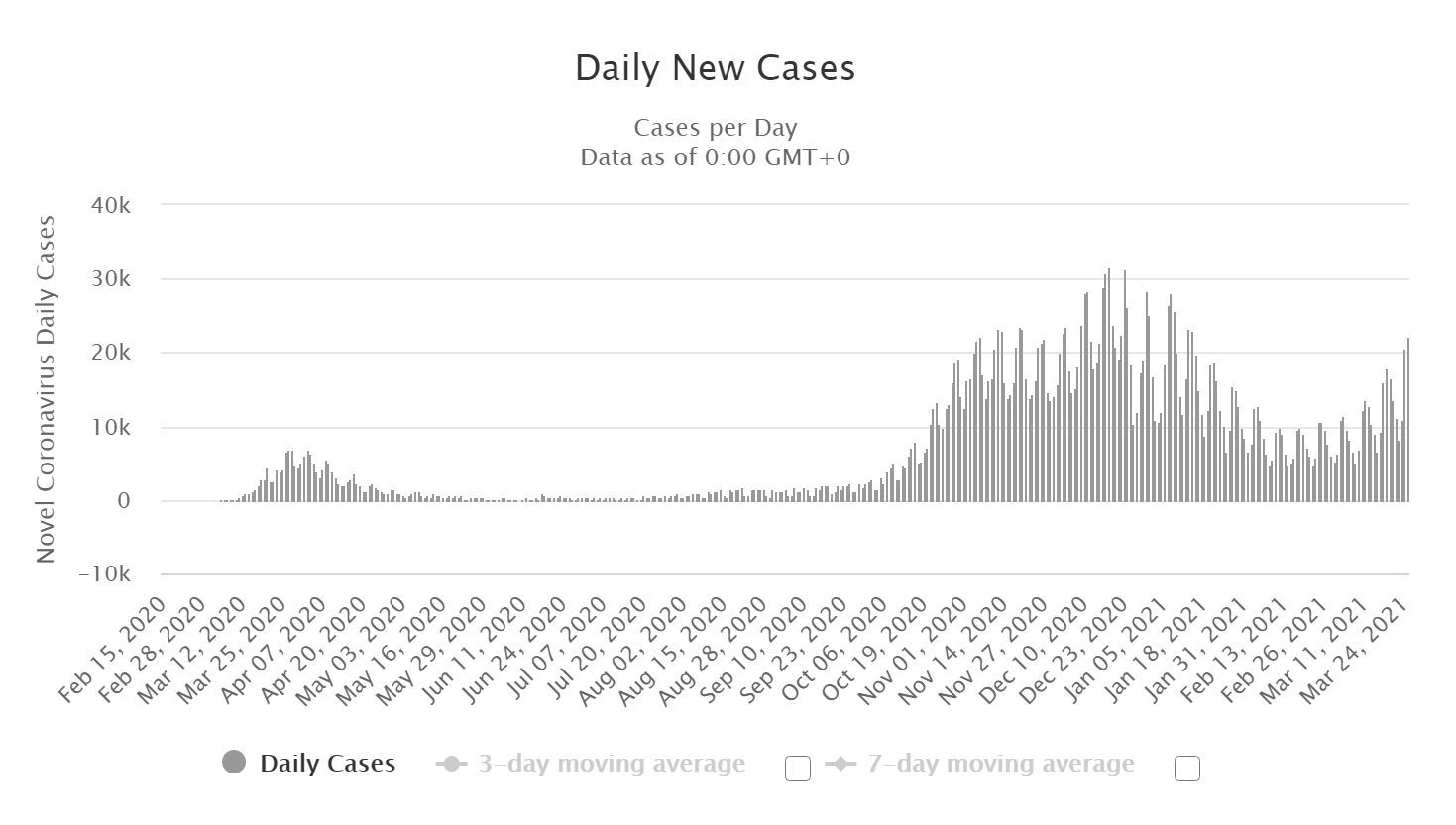 В большинстве европейских стран, кроме вышедшей из состава Евросоюза Великобритании, отчетливо прослеживается всплеск числа новых случаев заражения коронавирусом после спада в январе и феврале.