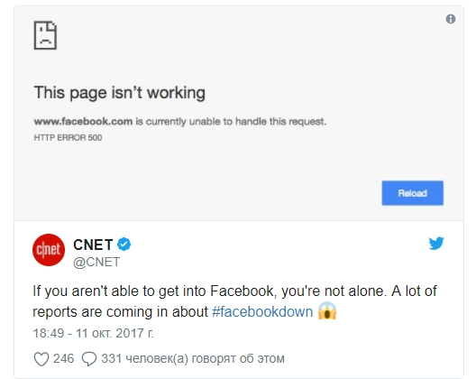 Глобальный сбой произошел в работе социальных сетей Facebook и Instagram. Их страницы не открываются у многих пользователей во всем мире.